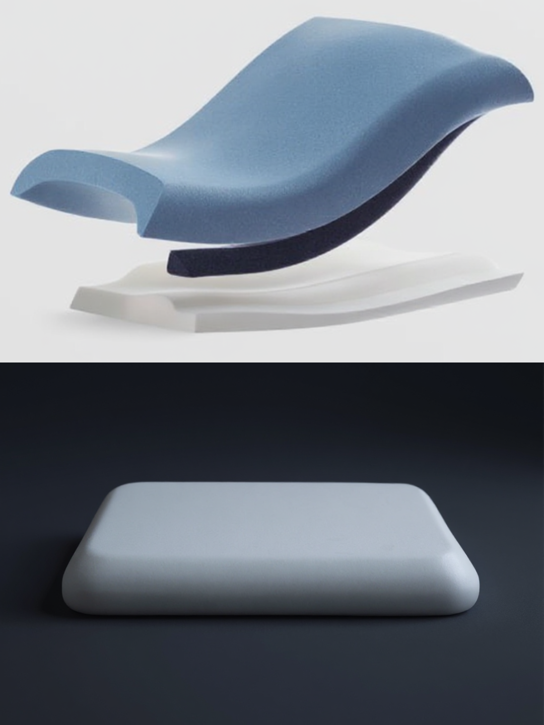 Our ergonomic pillow, tested on multiple foams, conforms to the cervical spine to reduce stiffness.